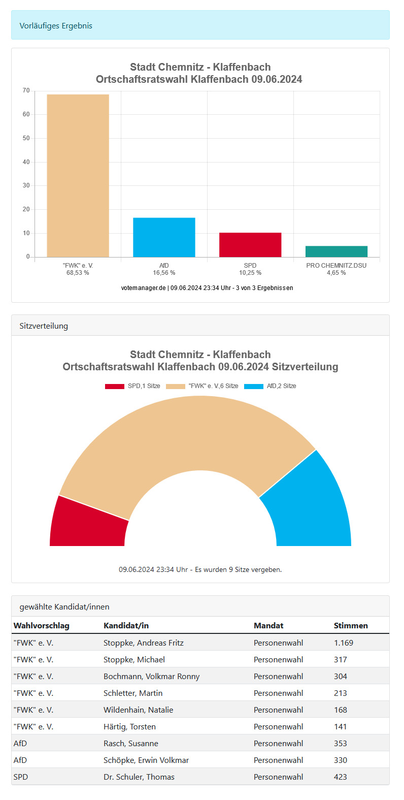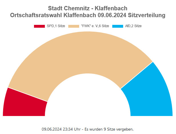Für Klaffenbach ergibt sich, nach der Wahl vom 09. Juni 2024, folgende Sitzverteilung: