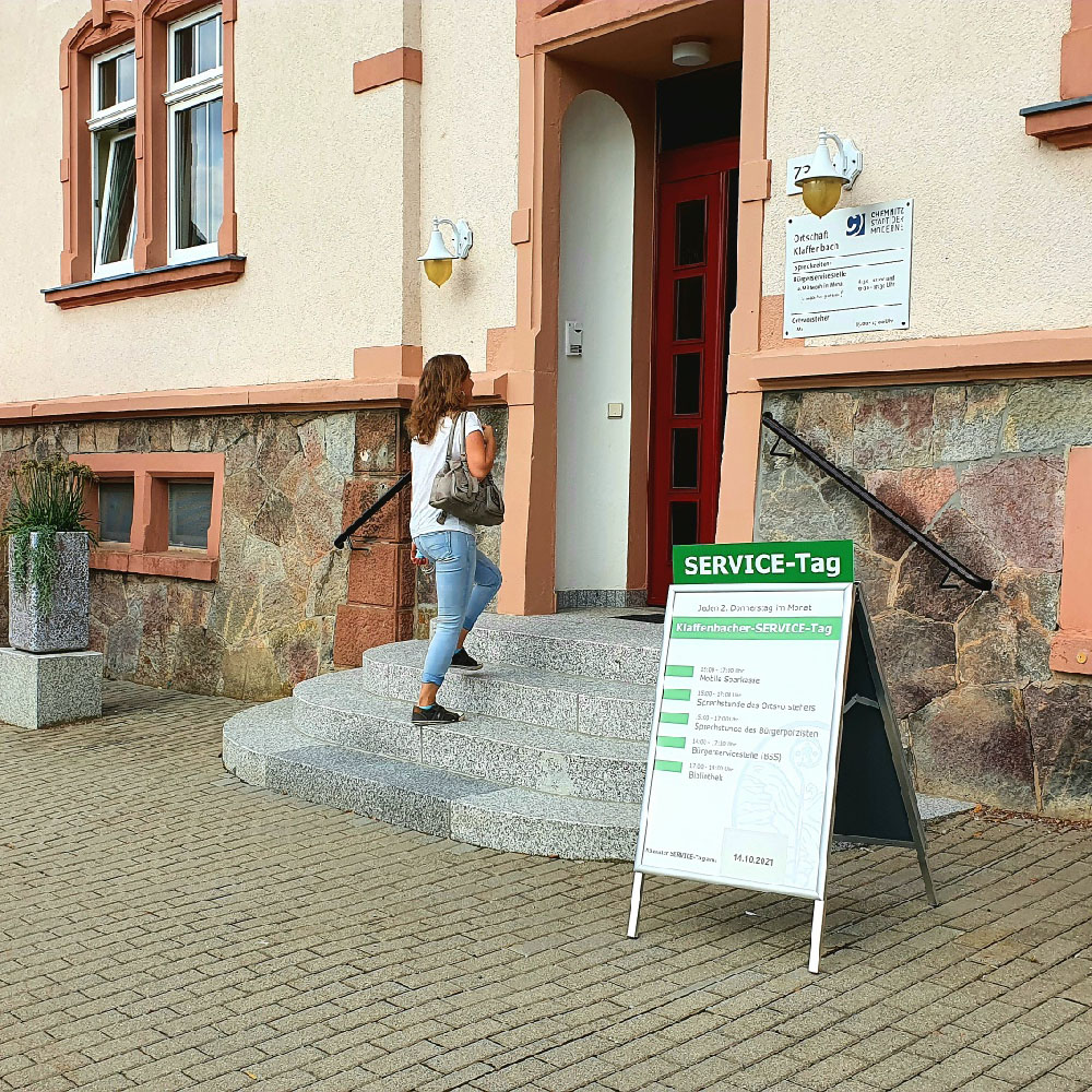 Etabliert haben sich sowohl der SERVICE-Tag mit Bürgerservicestelle im Rathaus, unsere Bürgerpolizistin, die Sprechstunde unseres Ortsvorstehers, als auch unsere Bibliothek und die mobile Sparkasse. Ebenso ist der Ortsanzeiger zu einem beliebten Druckwerk geworden, welches unser Redaktionsteam viermal im Jahr mit Neuigkeiten und Informationen rund um Klaffenbach zusammenfasst.